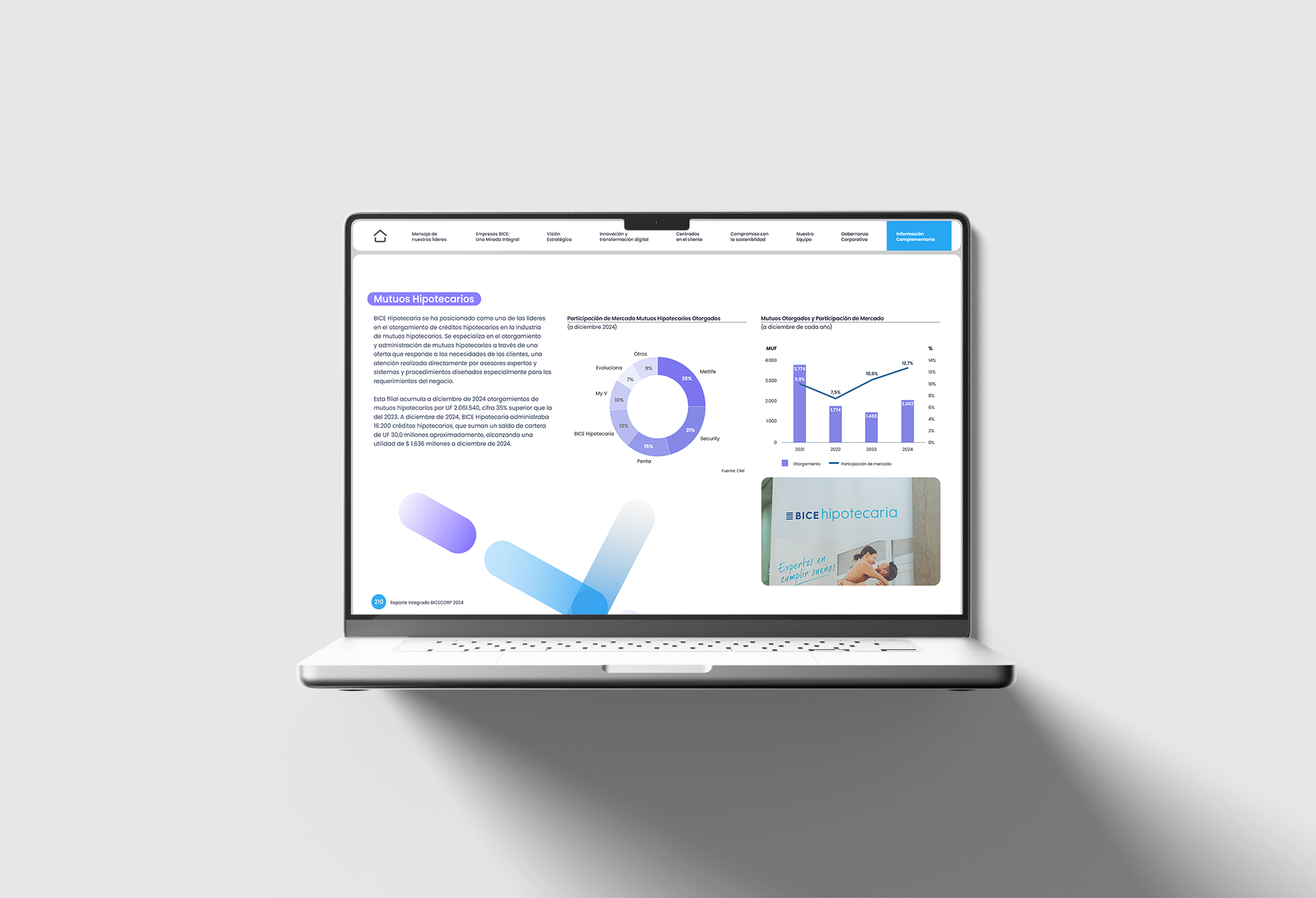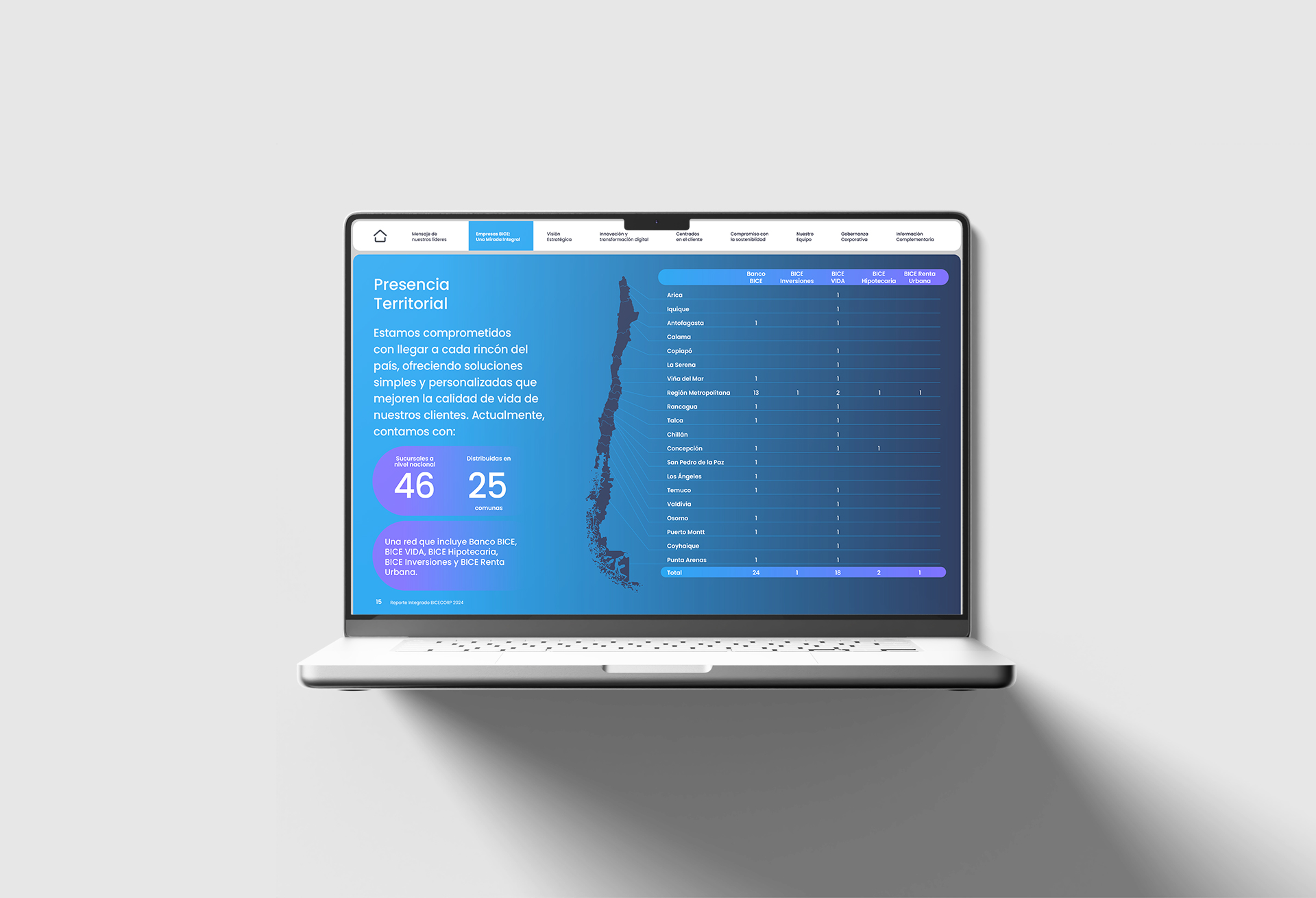 El resultado fue un sistema de reportes integrados sólido y coherente, que permitió a cada unidad del Grupo BICE comunicar sus logros y visión con claridad y personalidad.