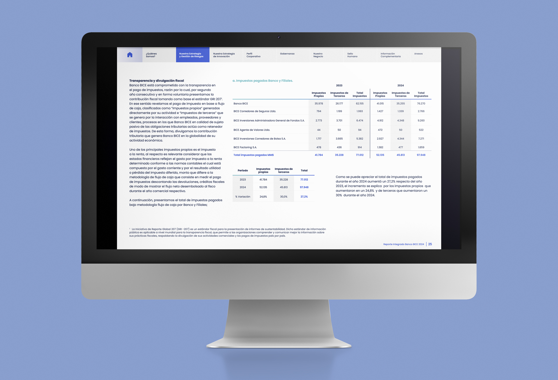 La estrategia de diseño fue guiada por principios de claridad: con especial atención en la experiencia de lectura digital: espaciados generosos, ritmo visual equilibrado y foco en la comprensión inmediata de cifras y mensajes clave.