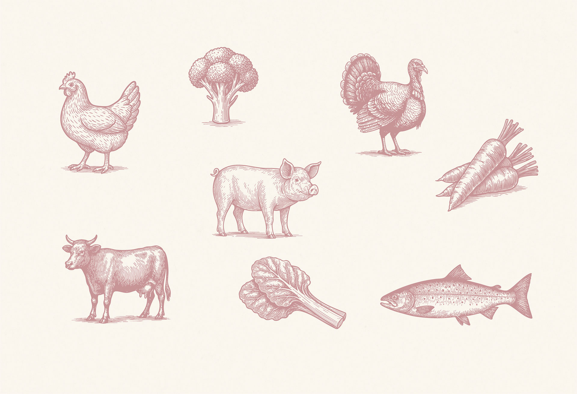 El lenguaje visual se complementa con ilustraciones en estilo vintage engraving, seleccionadas para representar ingredientes y animales del campo. Estas imágenes, con sus trazos finos que conectan directamente con la tradición agrícola y aportan una capa de narrativa visual que refuerza el carácter auténtico de la marca. Además, se desarrollaron bloques de color con formas irregulares, inspirados en el trazo manual, que permiten estructurar composiciones flexibles y visualmente ricas que aportan dinamismo.