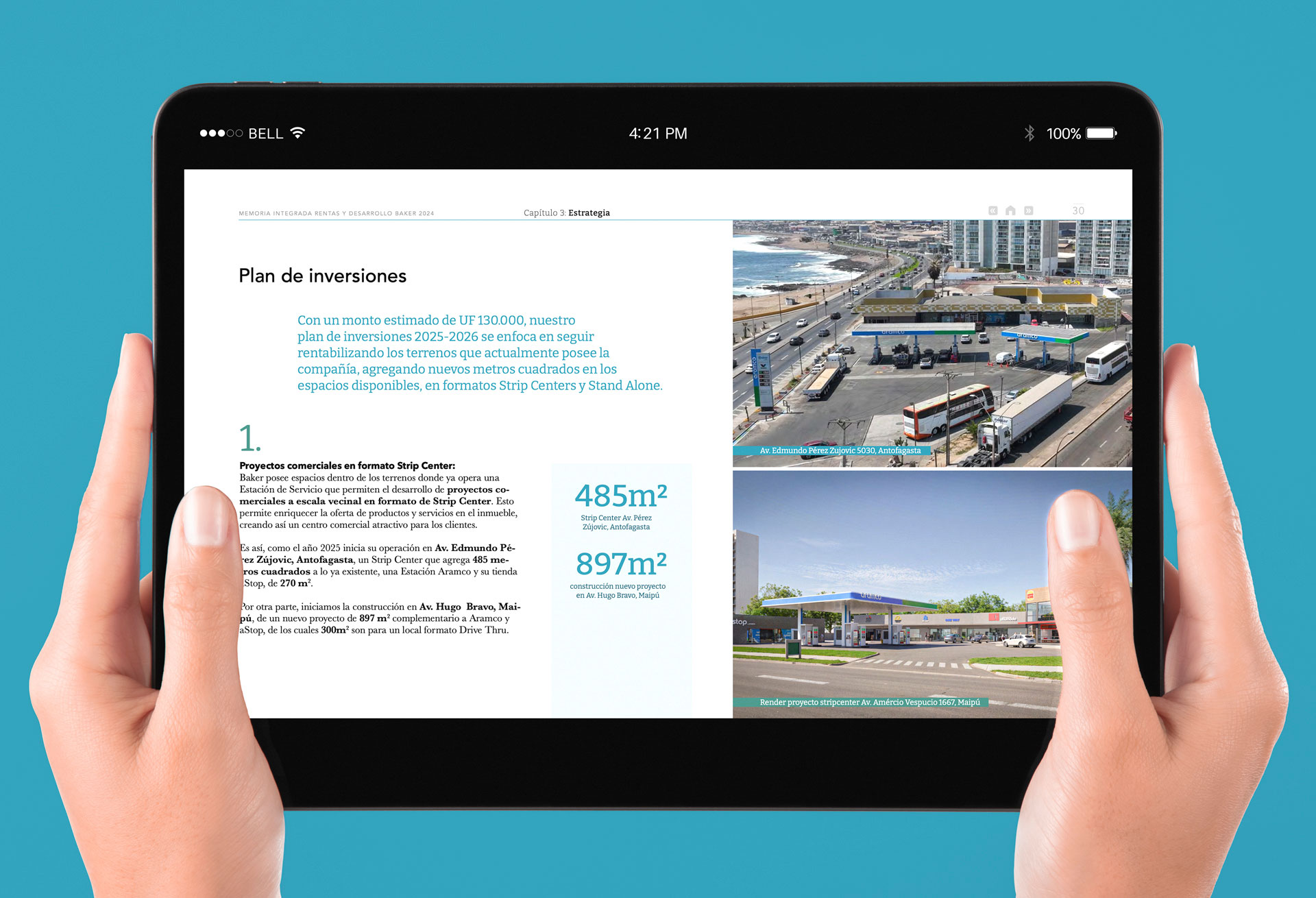 Desarrollamos la Memoria Integrada de Baker Comercial, con el propósito de proyectar de forma estratégica su crecimiento sostenido, solidez financiera y robustez patrimonial, en un momento clave para consolidar su posicionamiento en la industria.